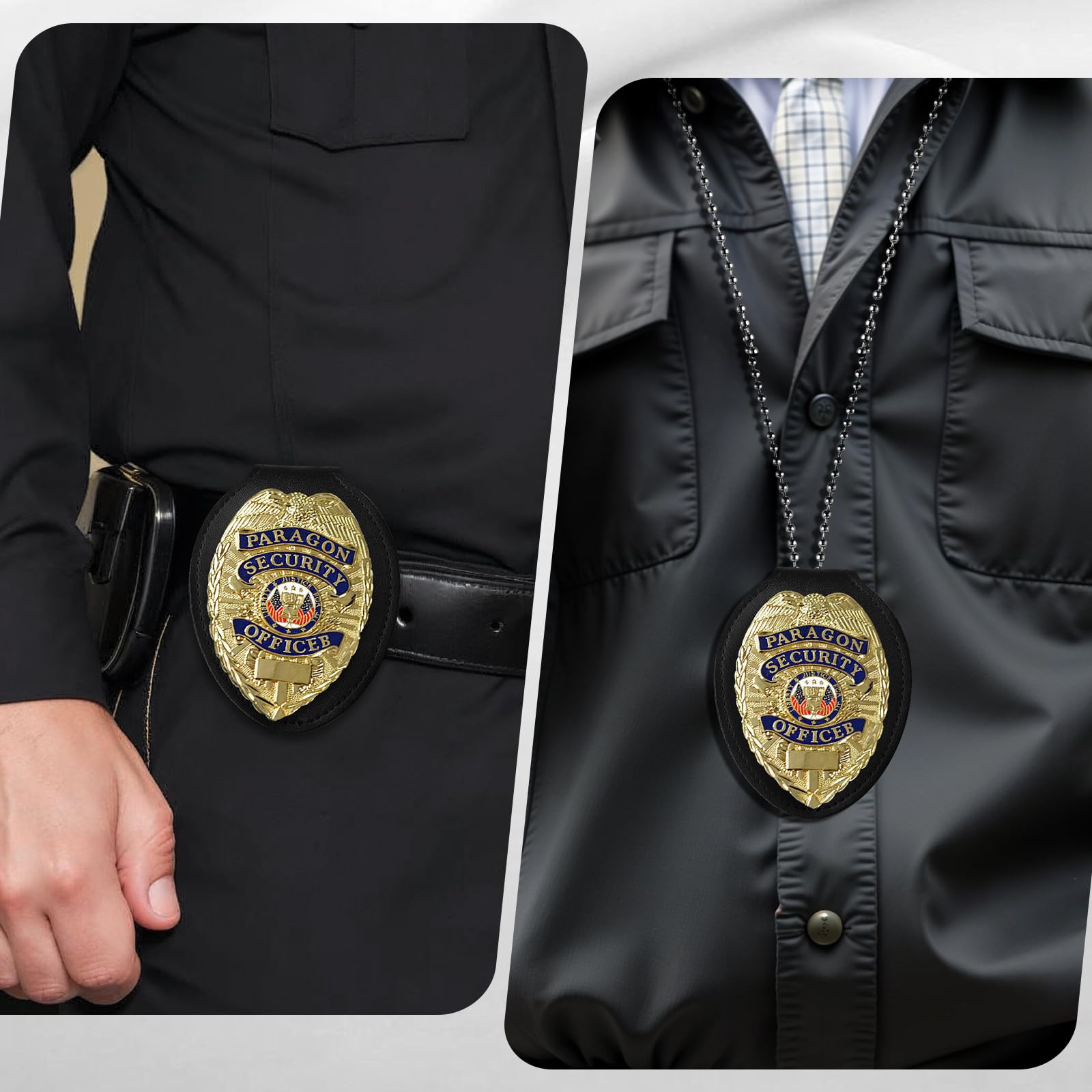 - Package Includes:When you receive the product, you will receive 1 PCS leather police badge with a metal belt clip and 1 PCS stainless steel necklace for easy wearing on your front.